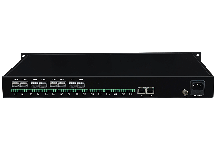 配置 16路控制數據網關網格型接入單元,2/4/6/8光2電百兆/千兆以太網接口,多路報警開關量可選,單模/多模/塑料,1/2纖,ST/FC/SC/LC/SFP光接口,15/20/25/32dB,獨立/冗余供電,1U機架,通用型
