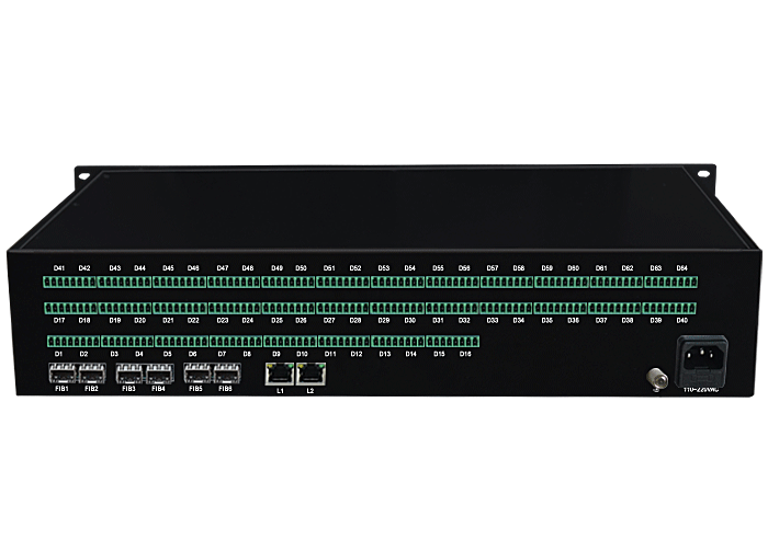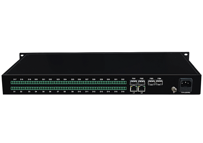 配置 4/8/16/24/32/48/64路控制數據網關網格型接入單元,2/4/6/8光2電百兆/千兆以太網接口,多路報警開關量可選,單模/多模/塑料,1/2纖,獨立/冗余供電,壁掛,高可靠型