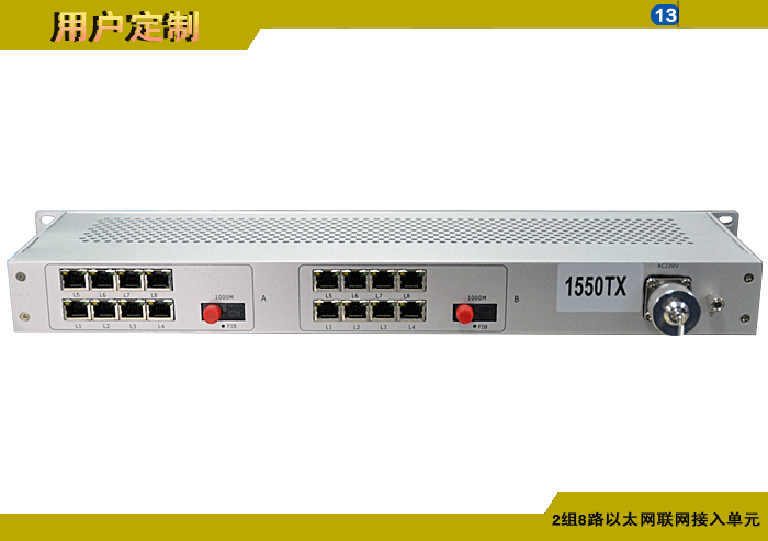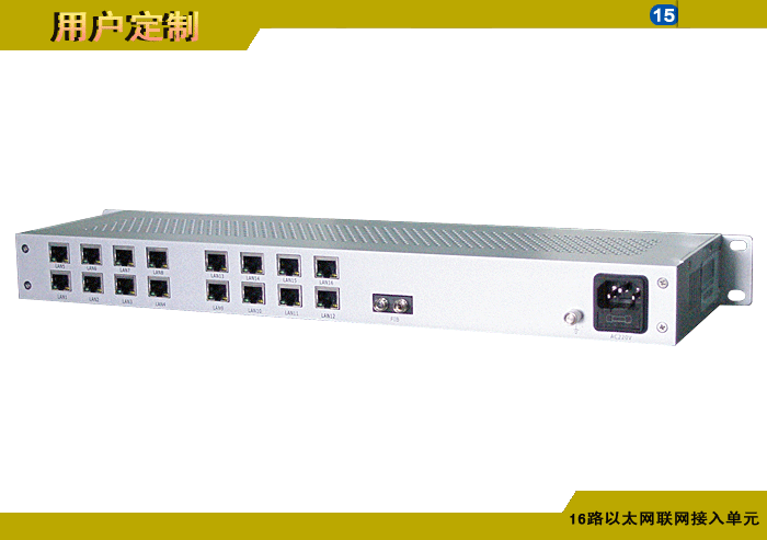 視頻會議終端以太網聯網接入單元發射機/接收機,16路10/100M以太網,數據/電話可選,單模/多模/塑料,1/2纖,ST/FC/SC/LC/SFP光接口,15/20/25/32dB,獨立供電,機架,通用/車載型,非網管/網管/帶光纖數字診斷網管 |