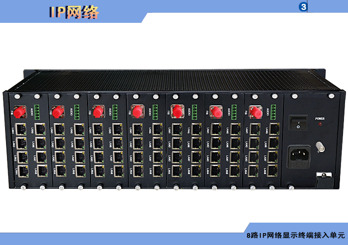 配置 8路IP網絡高清顯示接入發射單元,模擬/數字音頻可選,單模/多模,1/2纖,ST/FC/SC/LC/SFP光接口,3U插卡,通用型,非網管/網管/帶光纖數字診斷網管