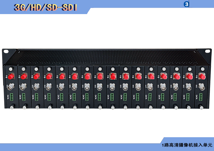 3G/HD/SD-SDI高清攝像機接入單元是江蘇新創自主研發創新,專門為1路或多路3G/HD/SD-SDI高清攝像機及可選的控制信號同時在單模、多模或塑料光纖上遠距離、無失真傳輸而設計。