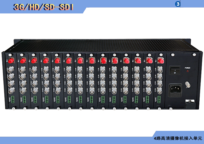 配置 4路3G/HD/SD-SDI高清攝像機接入接收單元,RS-232/485/422控制數據可選,單模/多模,1/2纖,ST/FC/SC/LC/SFP光接口,3U插卡,通用型,非網管/網管/帶光纖數字診斷網管
