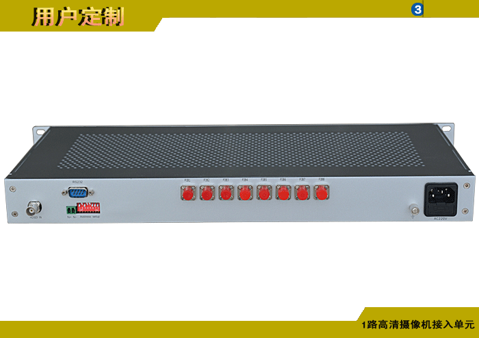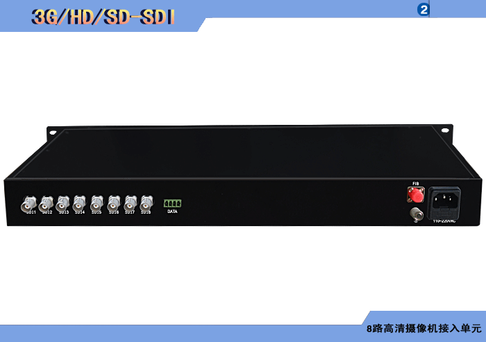 配置 8路3G/HD/SD-SDI高清攝像機接入發射單元,RS-232/485/422控制數據可選,單模/多模,1/2纖,ST/FC/SC/LC/SFP光接口,壁掛,通用型,非網管/網管/帶光纖數字診斷網管