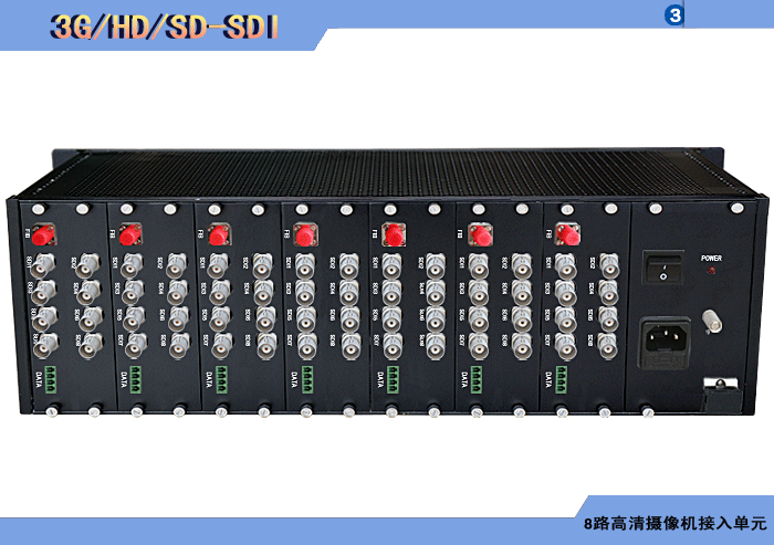 配置 8路3G/HD/SD-SDI高清攝像機接入接收單元,RS-232/485/422控制數據可選,單模/多模,1/2纖,ST/FC/SC/LC/SFP光接口,3U插卡,通用型,非網管/網管/帶光纖數字診斷網管