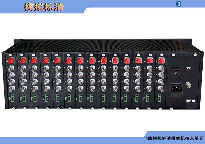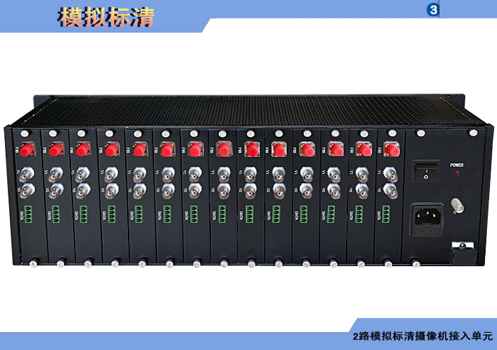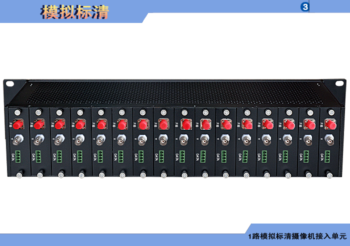 模擬標清攝像機接入單元是江蘇新創自主研發創新,專門為1路或多路模擬標清攝像機及可選的控制信號同時在單模、多模或塑料光纖上遠距離、無失真傳輸而設計。