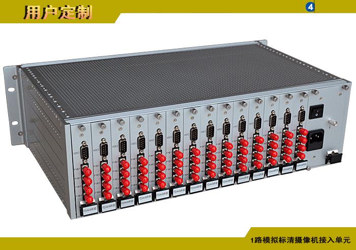 配置 4路模擬標清攝像機接入接收單元,RS-232/485/422控制數據可選,單模/多模,1/2纖,ST/FC/SC/LC/SFP光接口,3U插卡,通用型,非網管/網管/帶光纖數字診斷網管