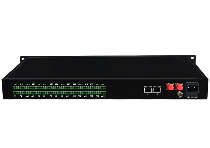 32路模擬音頻網關總線級聯型接入單元,2光2電百兆/千兆以太網接口,多路控制數據/報警開關量可選,單模/多模/塑料,1/2纖,ST/FC/SC/LC/SFP光接口,15/20/25/32dB,獨立/冗余供電,1U機架,通用型 |
