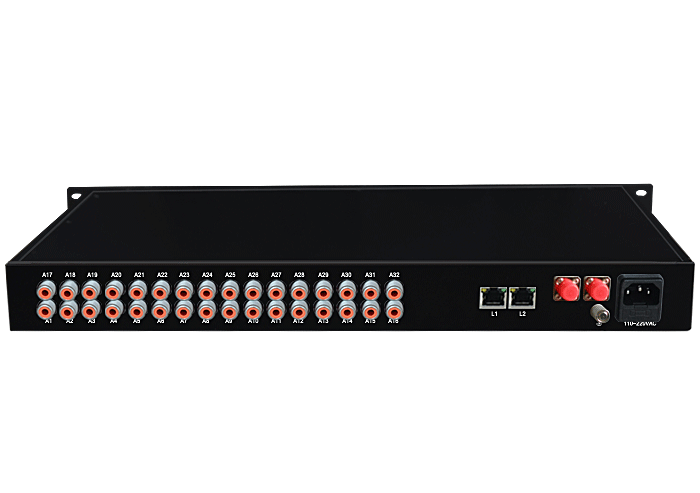 32路數字音頻網關總線級聯型接入單元,2光2電百兆/千兆以太網接口,多路控制數據/報警開關量可選,單模/多模/塑料,1/2纖,ST/FC/SC/LC/SFP光接口,15/20/25/32dB,獨立/冗余供電,1U機架,通用型 |