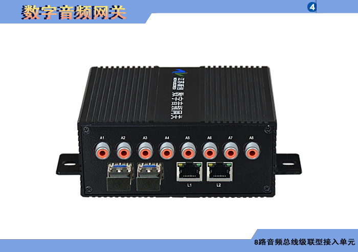 4/8/16/24/32/48/64路數字音頻網關總線級聯型接入單元,2光2電百兆/千兆以太網接口,多路控制數據/報警開關量可選,單模/多模/塑料,1/2纖,獨立/冗余供電,壁掛,高可靠型 |