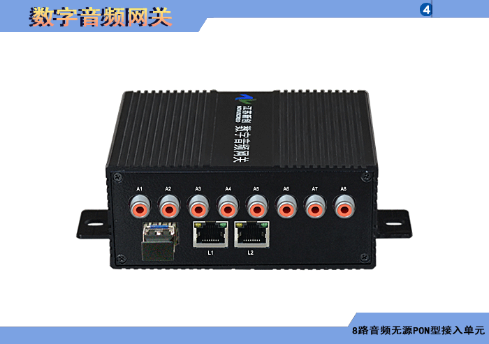 8路數字音頻網關無源PON型接入單元,1光2電百兆/千兆以太網接口,多路控制數據/報警開關量可選,單模/多模/塑料,1/2纖,ST/FC/SC/LC/SFP光接口,15/20/25/32dB,獨立/冗余供電,壁掛,通用型 |