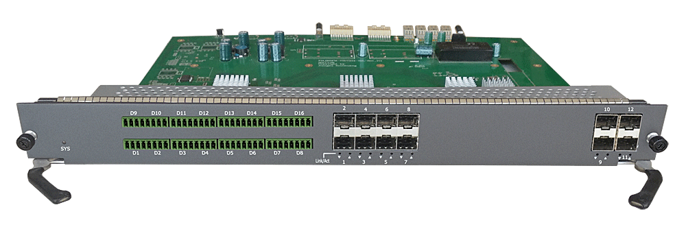 16路以太網(wǎng)控制數(shù)據(jù)中心接入?yún)R聚卡,4/8/16/24個百兆/千兆 SFP口,1/2/4個萬兆SFP上聯(lián)口,L2/L3層交換,RS-485/232/422/CAN/Profibus/Lonworks/IO開關(guān)量控制數(shù)據(jù)可選,可堆疊,背板供電,19英寸1/2/3/4插卡,通用型/工業(yè)型。 |