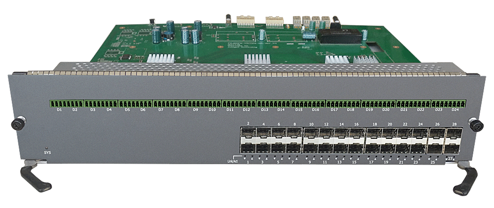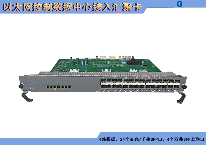24路以太網(wǎng)控制數(shù)據(jù)中心接入?yún)R聚卡,4/8/16/24個百兆/千兆 SFP口,1/2/4個千兆SFP上聯(lián)口,L2/L3層交換,RS-485/232/422/CAN/Profibus/Lonworks/IO開關(guān)量控制數(shù)據(jù)可選,可堆疊,背板供電,19英寸1/2/3/4插卡,通用型/工業(yè)型。 |