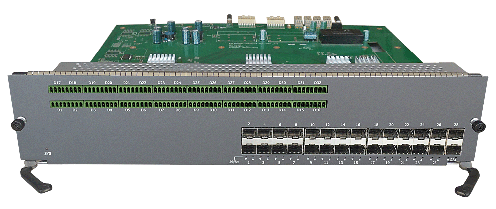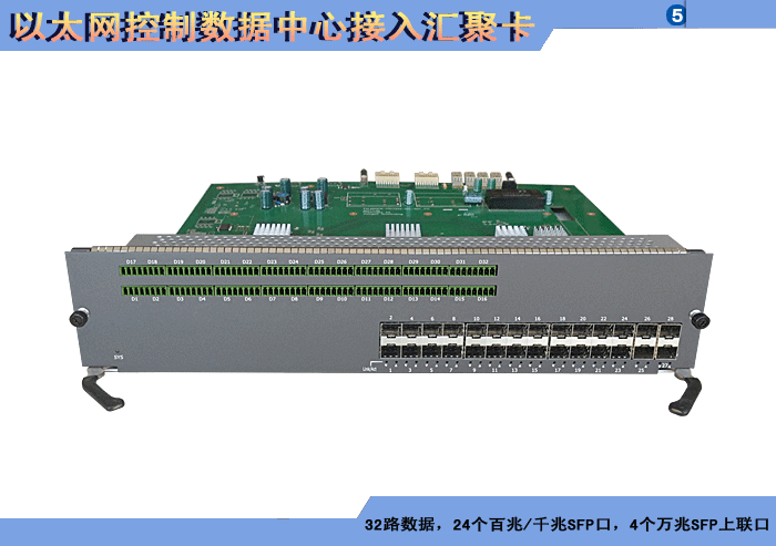 32路以太網(wǎng)控制數(shù)據(jù)中心接入?yún)R聚卡,4/8/16/24個百兆/千兆 SFP口,1/2/4個萬兆SFP上聯(lián)口,L2/L3層交換,RS-485/232/422/CAN/Profibus/Lonworks/IO開關(guān)量控制數(shù)據(jù)可選,可堆疊,背板供電,19英寸1/2/3/4插卡,通用型/工業(yè)型。 |