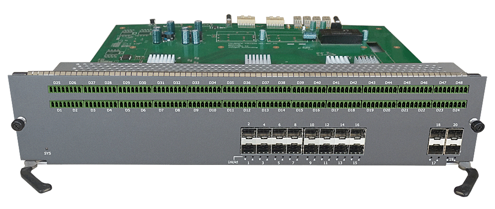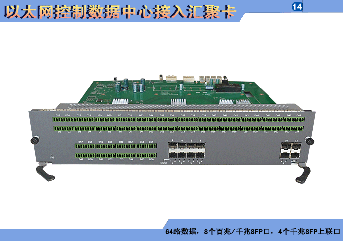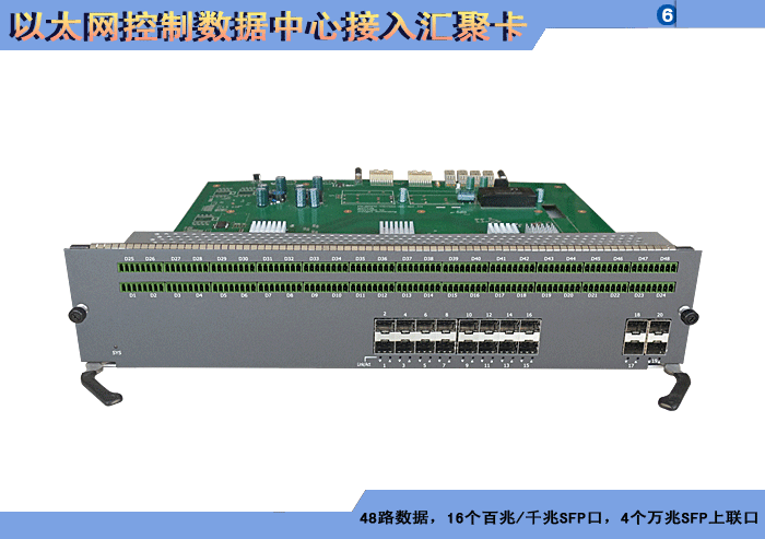 48路以太網(wǎng)控制數(shù)據(jù)中心接入?yún)R聚卡,4/8/16/24個百兆/千兆 SFP口,1/2/4個千兆SFP上聯(lián)口,L2/L3層交換,RS-485/232/422/CAN/Profibus/Lonworks/IO開關(guān)量控制數(shù)據(jù)可選,可堆疊,背板供電,19英寸1/2/3/4插卡,通用型/工業(yè)型。 |