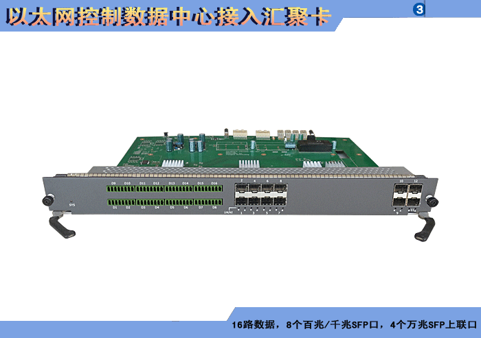 8路以太網(wǎng)控制數(shù)據(jù)中心接入?yún)R聚卡,4/8/16/24個百兆/千兆 SFP口,1/2/4個千兆SFP上聯(lián)口,L2/L3層交換,RS-485/232/422/CAN/Profibus/Lonworks/IO開關(guān)量控制數(shù)據(jù)可選,可堆疊,背板供電,19英寸1/2/3/4插卡,通用型/工業(yè)型。 |