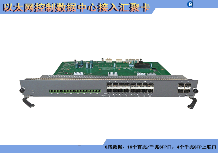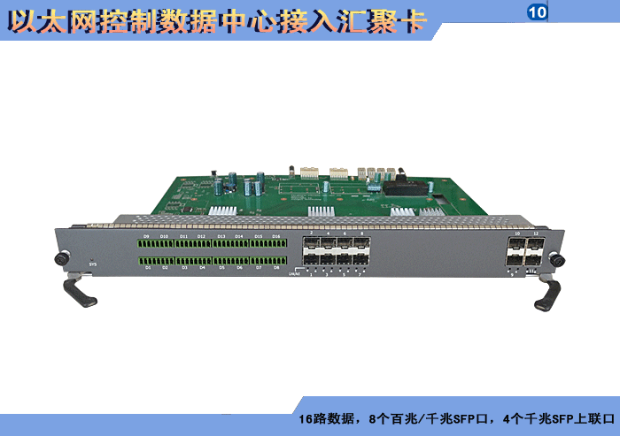 8路以太網(wǎng)控制數(shù)據(jù)中心接入?yún)R聚卡,4/8/16/24個百兆/千兆 SFP口,1/2/4個萬兆SFP上聯(lián)口,L2/L3層交換,RS-485/232/422/CAN/Profibus/Lonworks/IO開關(guān)量控制數(shù)據(jù)可選,可堆疊,背板供電,19英寸1/2/3/4插卡,通用型/工業(yè)型。 |