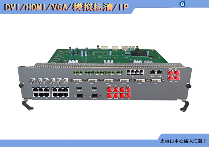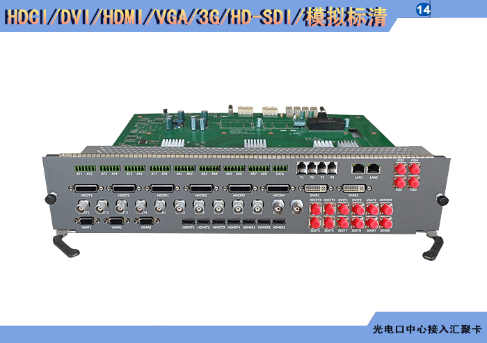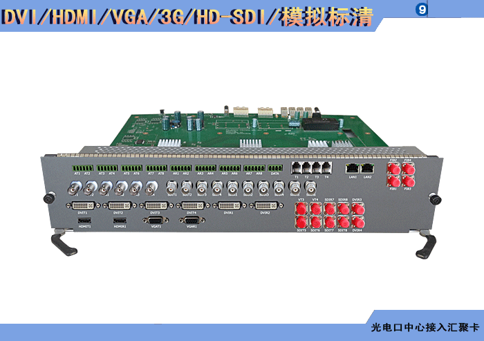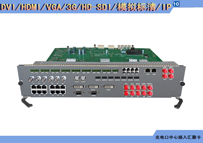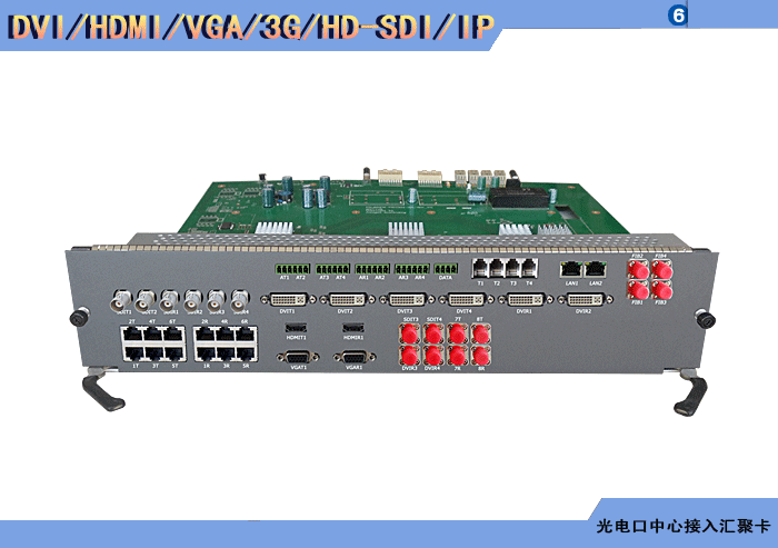 | HDCI/DVI/HDMI/DP/VGA/YPbPr/3G/HD-SDI/模擬標清視頻攝像機+DVI/HDMI/DP/VGA/YPbPr/3G/HD-SDI//模擬標清視頻顯示屏系列光電口中心接入匯聚卡 | |||