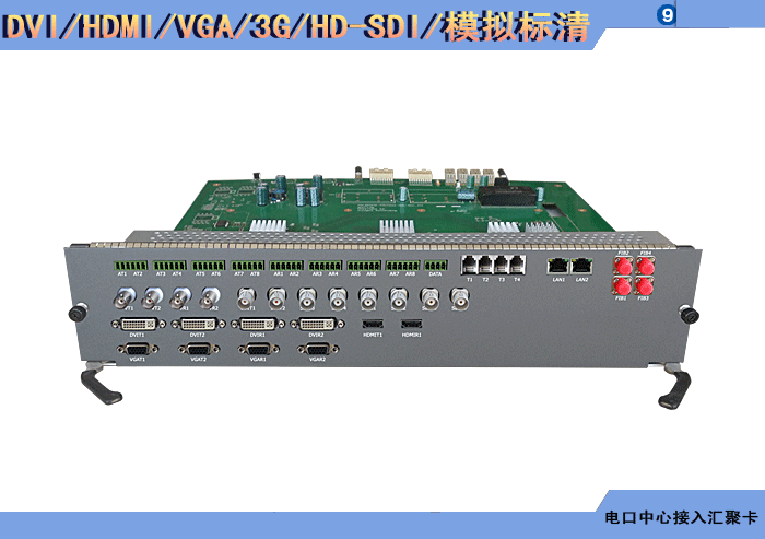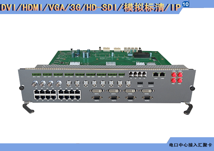 HDCI/DVI/HDMI/DP/VGA/YPbPr/3G/HD-SDI/模擬標清視頻攝像機+DVI/HDMI/DP/VGA/YPbPr/3G/HD-SDI//模擬標清視頻顯示屏系列電口中心接入匯聚卡 |