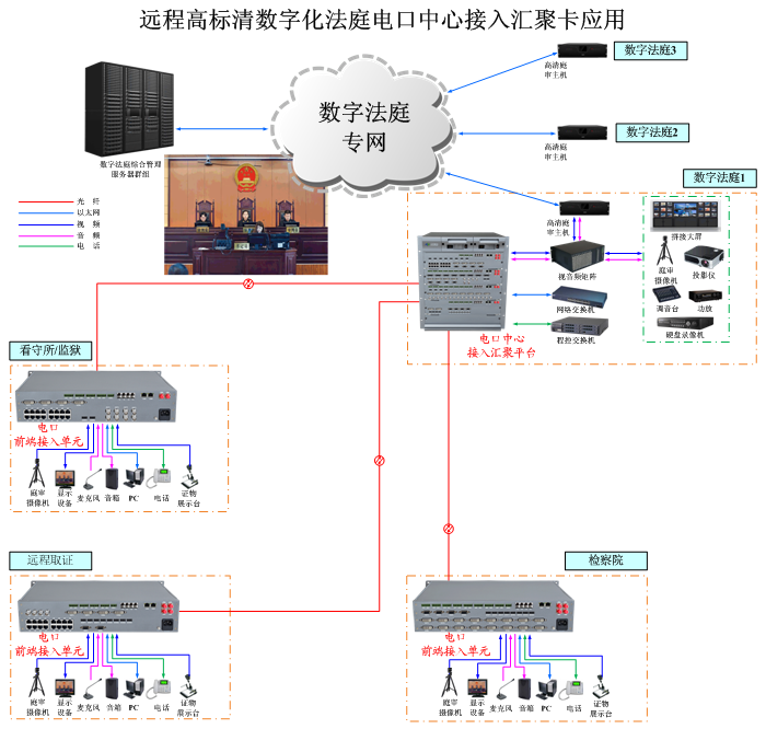 遠程高標清數字化法庭系統電口中心接入匯聚卡,1/2/4/8路DVI/HDMI/DP/VGA/YPbPr/3G/HD-SDI/模擬標清視頻攝像機電口輸出,1/2/4/8路DVI/HDMI/DP/VGA/YPbPr/3G/HD-SDI/模擬標清視頻顯示屏電口輸入,1/2/4/8路模擬/數字雙向立體聲音頻可選,1/2/4/8路可選數據,多路電話或百兆/千兆以太網可選,單模/多模,獨立/冗余供電,1/2/3/4U機架,非網管/網管/帶光纖數字診斷網管 |
