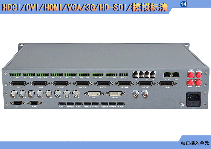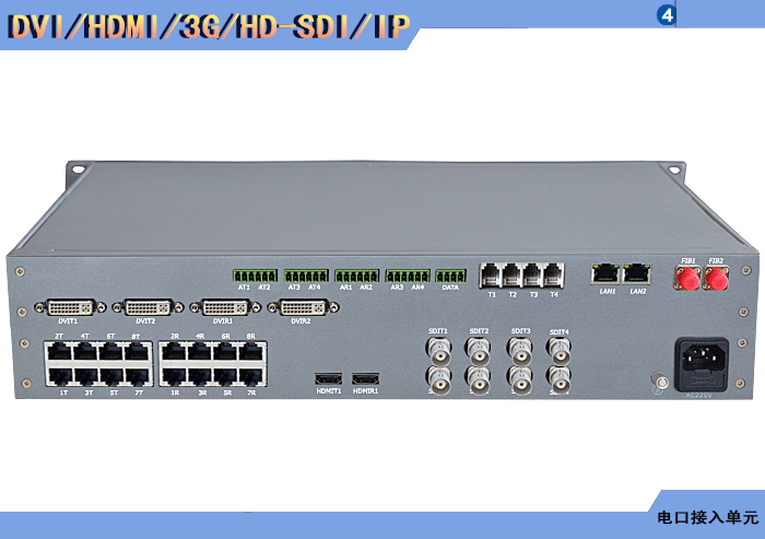 HDCI/DVI/HDMI/DP/VGA/YPbPr/3G/HD-SDI/模擬標清視頻攝像機+DVI/HDMI/DP/VGA/YPbPr/3G/HD-SDI//模擬標清視頻顯示屏系列電口接入單元 |