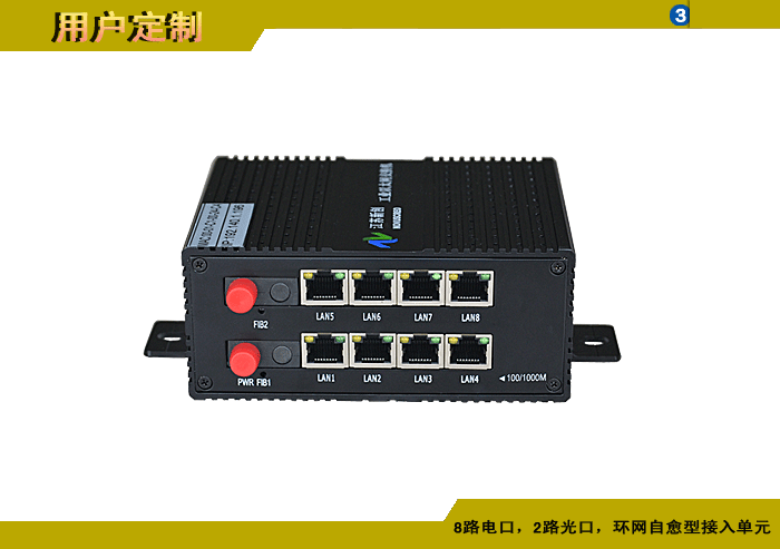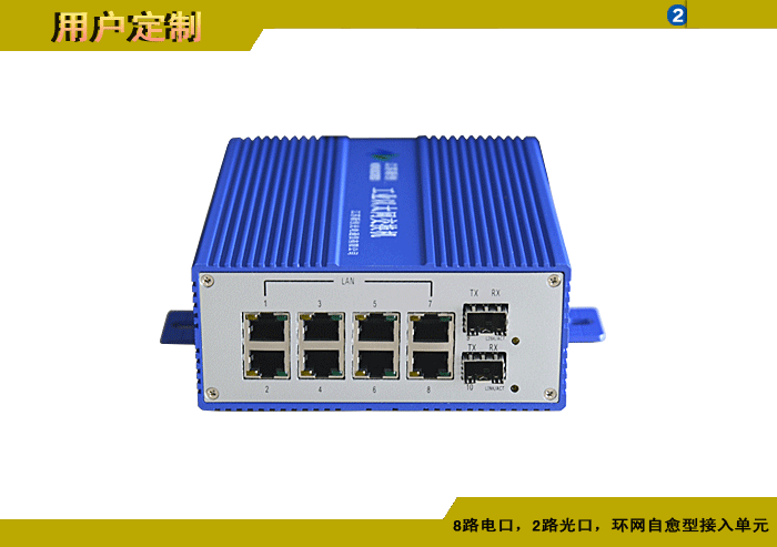 配置 以太網環網自愈型接入單元,8路10/100/1000M電口,2路光纖接口,100M/1G/10G光口可選,單模/多模/塑料,1/2纖,獨立/冗余/總線供電(DC18~36V/5V),導軌,工業型
