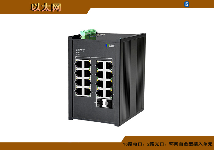 配置 以太網環網自愈型接入單元,16路10/100/1000M電口,2路光纖接口,100M/1G/10G光口可選,單模/多模/塑料,1/2纖,獨立/冗余/總線供電(DC18~36V/5V),導軌,工業型