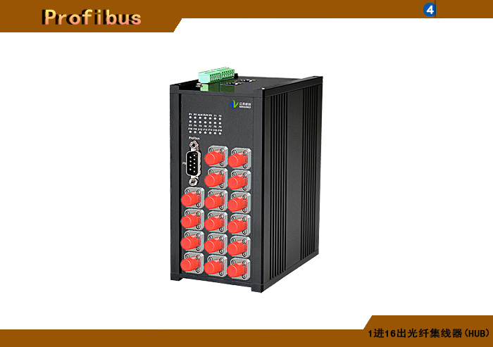 配置 1進16出Profibus光纖集線器(HUB),獨立/冗余/總線供電(DC18~36V),導軌,工業型