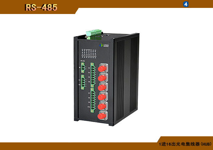 RS-485光電集線器(HUB)支持光纖分配或擴展接口,光纖接口非常靈活,不但支持單?;蚨嗄;蛩芰瞎饫w,同時支持單纖、雙纖或多接入互連;光纖端面支持PC/APC/UPC;光接口ST、FC、SC、LC、E2000和任意可選,支持SFP可插拔光模塊。支持工業/高可靠/防水等各種高可靠光纖連接器;支持各種不同的距離,多模大8公里;單模0~120公里,塑料光纖0~1200米;發射波長1310~1610nm(單模) ,850~1610nm(多模),650~1310nm(塑料光纖)。
