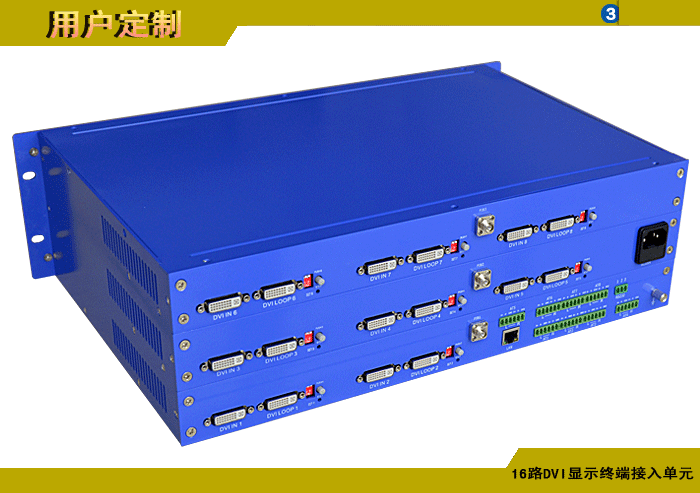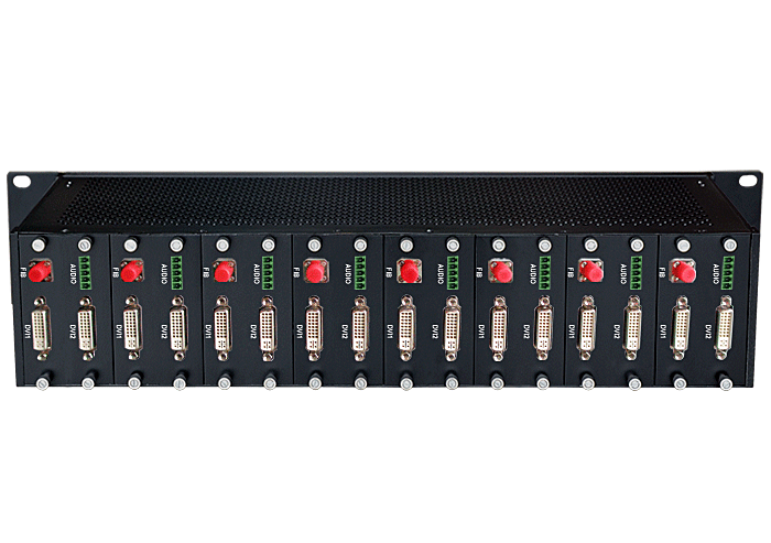 16路DVI高清顯示接入發射單元,模擬/數字音頻可選,單模/多模,1/2纖,ST/FC/SC/LC/SFP光接口,3U機架,通用型,非網管/網管/帶光纖數字診斷網管 |