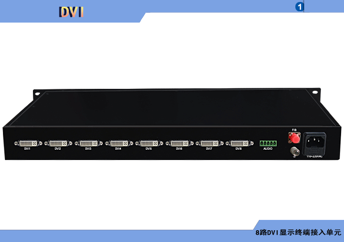 8路DVI高清顯示接入發射單元,模擬/數字音頻可選,單模/多模,1/2纖,ST/FC/SC/LC/SFP光接口,1U機架,通用型,非網管/網管/帶光纖數字診斷網管 |