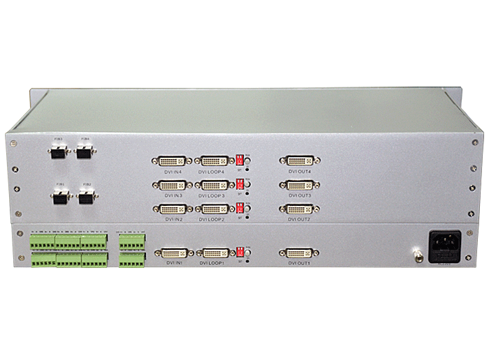 4路DVI高清顯示接入發射單元,模擬/數字音頻可選,單模/多模,1/2纖,ST/FC/SC/LC/SFP光接口,1U機架,通用型,非網管/網管/帶光纖數字診斷網管 |
