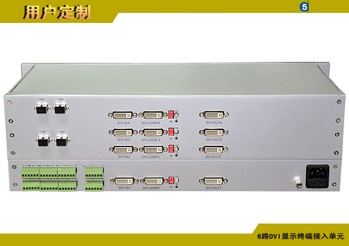 6路DVI高清顯示接入發射單元,模擬/數字音頻可選,單模/多模,1/2纖,ST/FC/SC/LC/SFP光接口,1U機架,通用型,非網管/網管/帶光纖數字診斷網管 |
