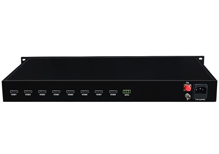 8路HDMI高清攝像機接入發射單元,RS-232/485/422控制數據可選,單模/多模,1/2纖,ST/FC/SC/LC/SFP光接口,1U機架,通用型,非網管/網管/帶光纖數字診斷網管 |