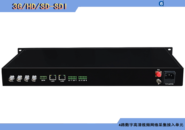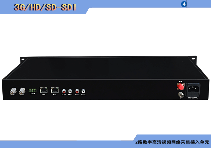 1/2/3/4路3G/HD-SDI數字高清視頻網絡采集接入單元,1光2電百兆/千兆以太網接口,多路RS-232/485/422/IO開關量可選,1路雙向音頻可選,單模/多模/塑料,獨立/冗余供電,機架,通用型 |