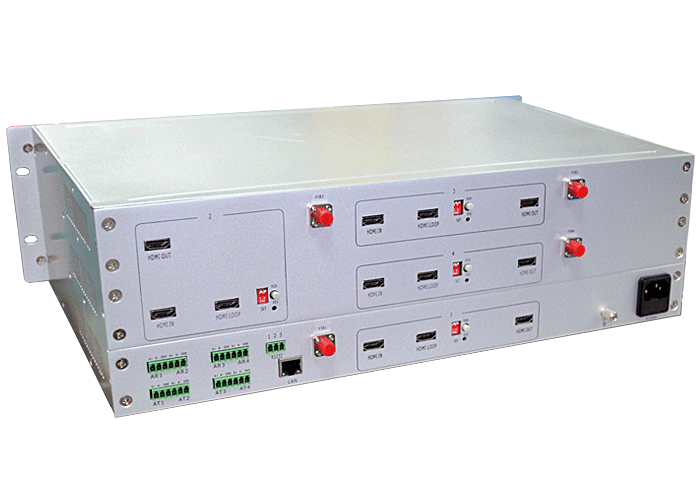 12路HDMI數(shù)字高清視頻網(wǎng)絡(luò)采集接入單元,1光2電百兆/千兆以太網(wǎng)接口,1路雙向音頻/報警開關(guān)量/控制數(shù)據(jù),單模/多模/塑料,1/2纖,ST/FC/SC/LC/SFP光接口,15/20/25/32dB,獨立/冗余供電,3U機架,通用型 |