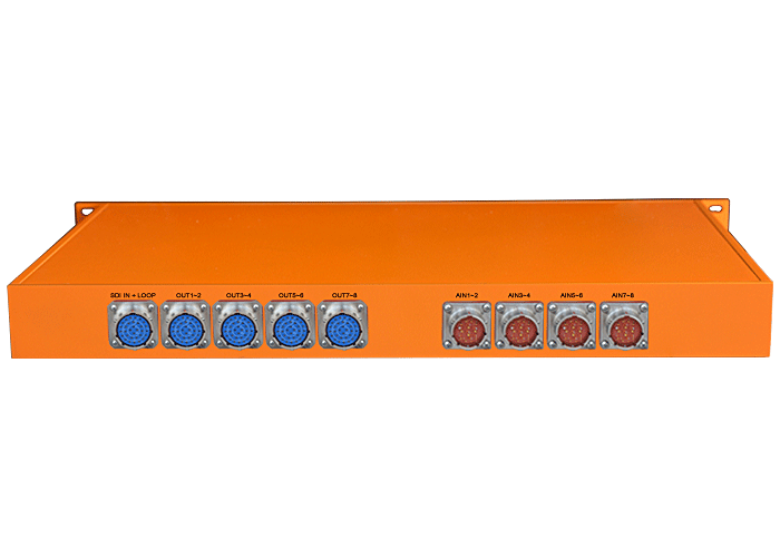 模擬音頻3G/HD/SD-SDI嵌入器,1路3G/HD/SD-SDI輸入,環路直通輸出,8路嵌入分配輸出,8路模擬音頻卡儂/端子/3.5mm/RCA接口輸入,獨立/冗余供電,機架,通用型 |