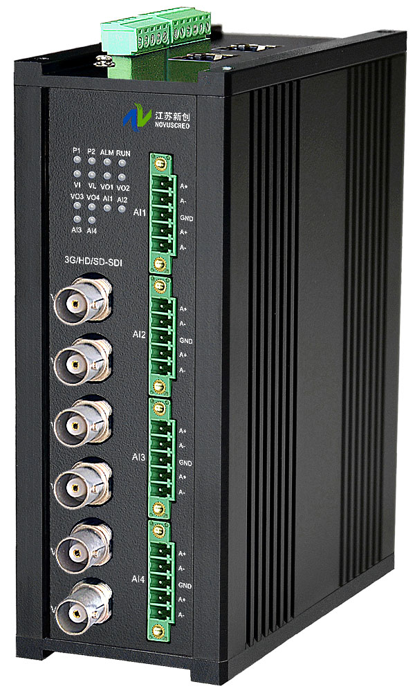 模擬音頻3G/HD/SD-SDI嵌入器,1路3G/HD/SD-SDI輸入,環路直通輸出,4路嵌入分配輸出,4路模擬音頻卡儂/端子/3.5mm/RCA接口輸入,獨立/冗余/總線供電(DC18~36V/5V),導軌,工業型 |