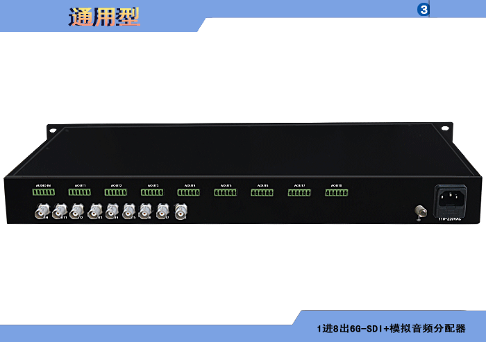 | 配置 | 1進8出6G-SDI模擬音頻分配器,卡儂/端子/3.5mm/RCA接口,獨立/冗余供電,機架,通用型 | ||