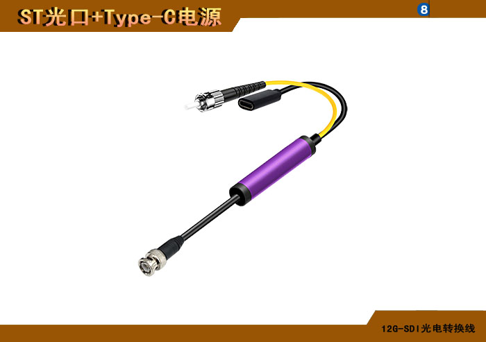 12G-SDI光電轉換線 ST光纖接口+Type-C電源接口 |
