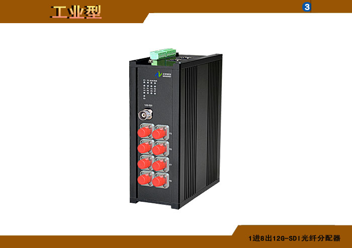 1進8出12G-SDI光纖分配器,獨立/冗余/總線供電(DC18~36V/5V),導軌,工業型 |