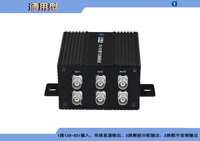數字音頻12G-SDI解嵌器,1路12G-SDI輸入,環路直通輸出,2路解嵌分配輸出,2路數字音頻卡儂/BNC/RCA/光纖接口輸出,獨立/冗余供電,壁掛,通用型 |