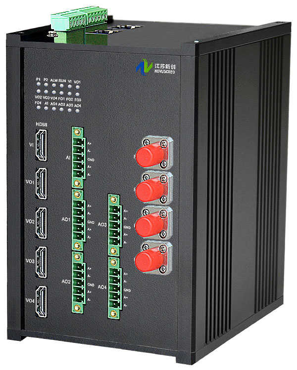 1進4出4K HDMI模擬音頻光電分配器,內置數字均衡器/抖動去除器可選,獨立/冗余/總線供電(DC18~36V/5V),導軌,工業型 |