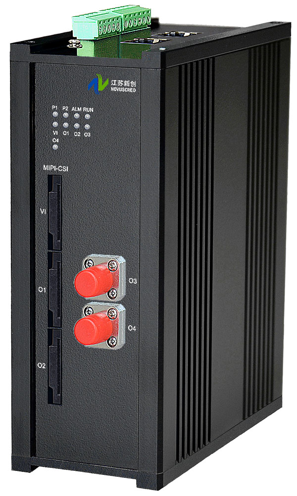 1進4出MIPI-CSI/DSI光電分配器,內置數字均衡器/抖動去除器可選,獨立/冗余/總線供電(DC18~36V/5V),導軌,工業型 |