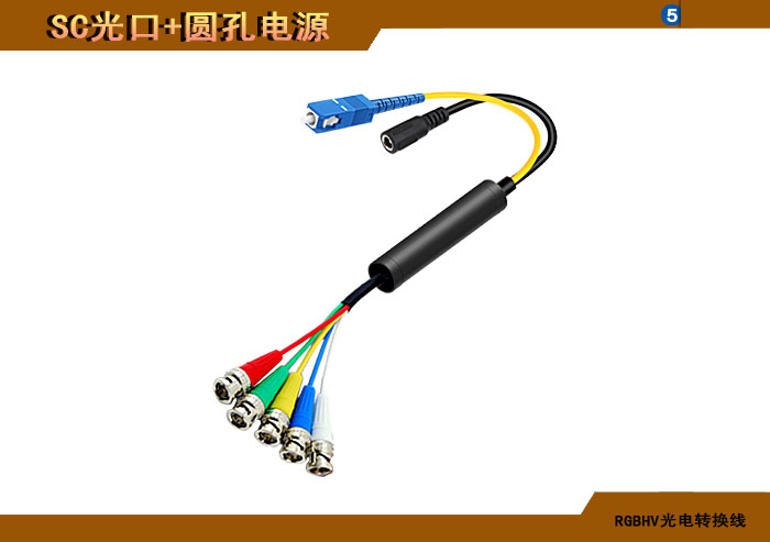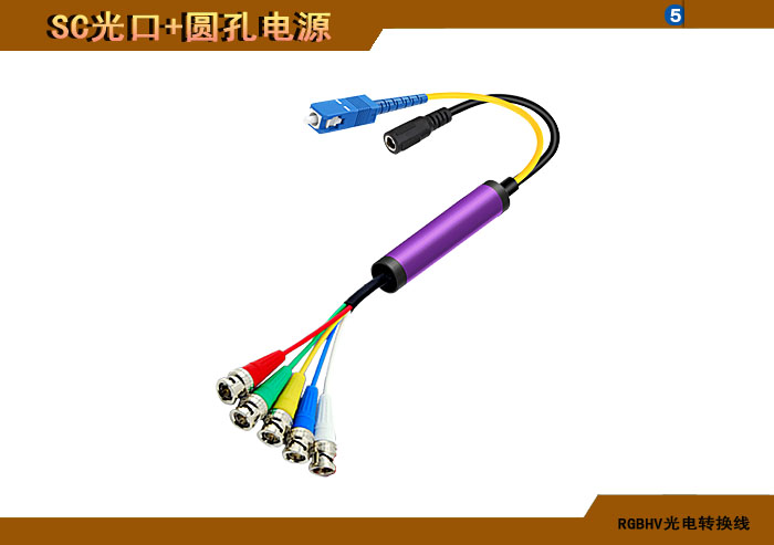 RGBHV光電轉(zhuǎn)換線 SC光纖接口+圓孔電源接口 |