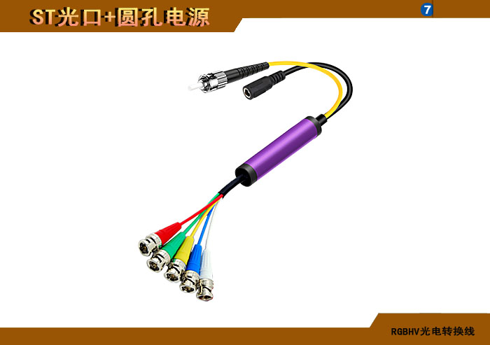 RGBHV光電轉(zhuǎn)換線 ST光纖接口+圓孔電源接口 |