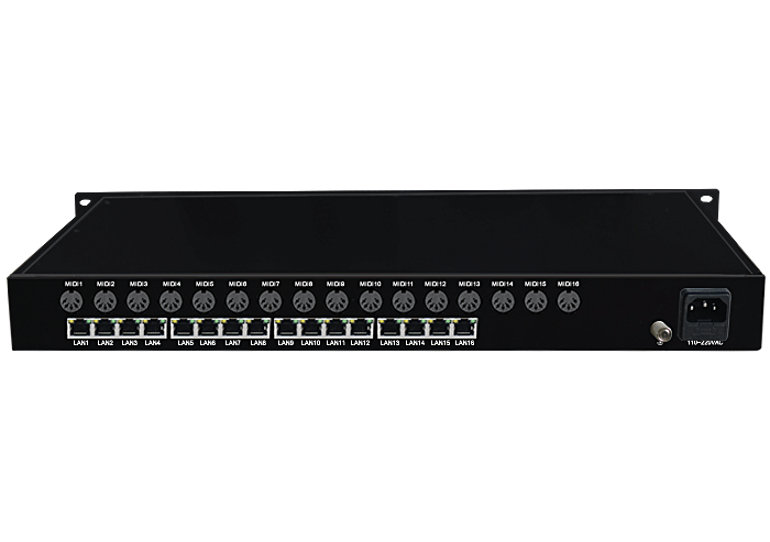 多路集中式MIDI/以太網協議轉換器,10/100M自適應,獨立/冗余供電,1U機架,通用型 |