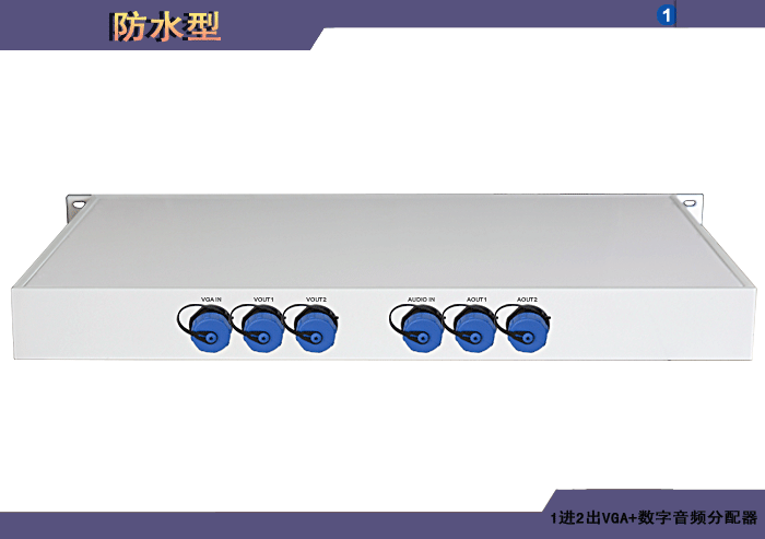 VGA數字音頻分配器防水型封裝采用IP67/68等高等級防水機箱、防水接插件和連接線纜,使用相應的高性能防水密封、無浸潤和抗腐蝕技術,可以使得產品長期工作在高濕度、雨淋、風雪災難、水下作業、航海、海底鉆探和井下救災等需要高IP等級密封防水和腐蝕場合。