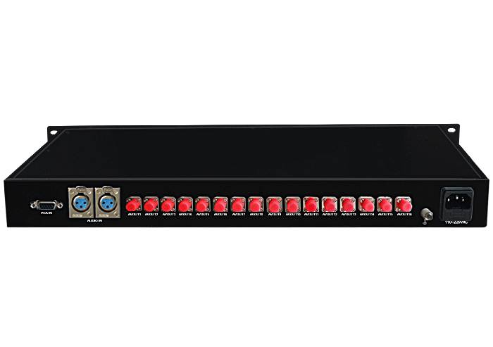 1進16出VGA模擬音頻光纖分配器,卡儂/端子/3.5mm/RCA接口,獨立/冗余供電,機架,通用型 |