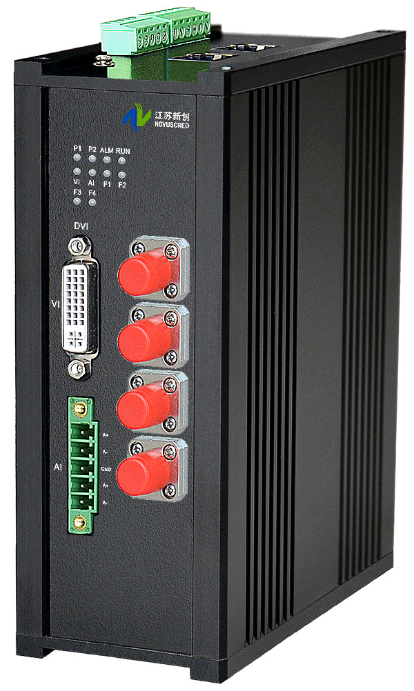 1進4出DVI模擬音頻光纖分配器,內置數字均衡器/抖動去除器可選,卡儂/端子/3.5mm/RCA接口,獨立/冗余/總線供電(DC18~36V/5V),導軌,工業型 |
