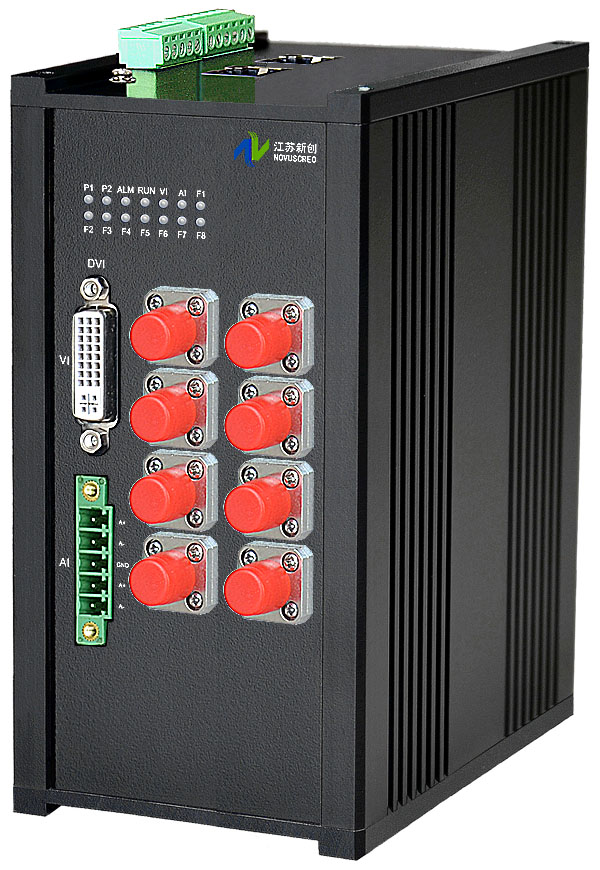 1進8出DVI模擬音頻光纖分配器,內置數字均衡器/抖動去除器可選,卡儂/端子/3.5mm/RCA接口,獨立/冗余/總線供電(DC18~36V/5V),導軌,工業型 |